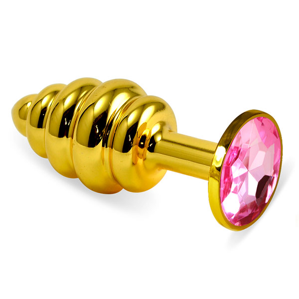 • Анальнная пробка "Vandersex"металл,рельеф ,светло розовый кристал S Gold