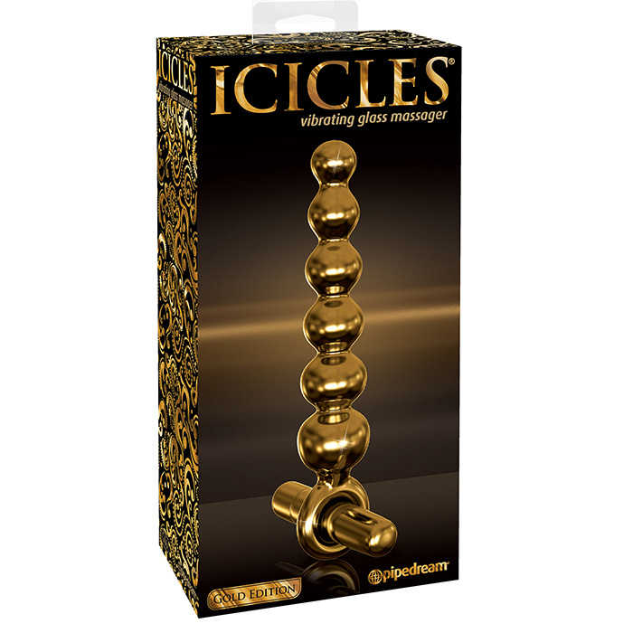 Icicles Gold Edition- это чувственное искусство, новый уровень роскоши и стиля с элегантной золотой отделкой. Благодаря своей уникальной изогнутой форме, он очень легко вводится и доставляет Вам потрясающее наслаждение. Изысканный стимулятор ICICLES G06 имеет форму плавно переходящих округлых шариков, которые постепенно увеличиваются в размере. В комплекте идет микровибратор для большего наслаждения. Превосходно подойдет как для стимуляции простаты, так и для воздействия на другие зоны ануса.