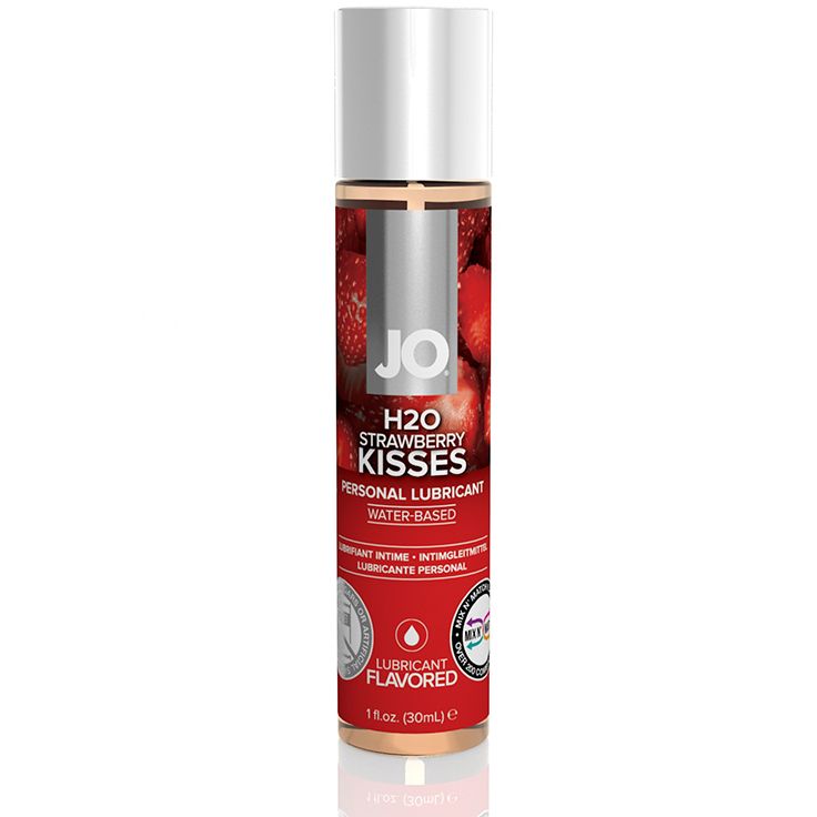 Ароматизированный любрикант на водной основе JO Flavored Клубничный поцелуй - превосходный аромат земляничного поцелуя и длительное скольжение. Только натуральные компоненты, без искусственных добавок. На водной основе, но нежный как силикон, долгое скольжение, никакой липкости, легко смывается. JO рекомендуется во всем мире врачами и фармацевтами. JO H2O Strawberry Kiss ароматизированный персональный любрикант обладает всеми преимуществами фаворита JO H2O, плюс приятный земляничный аромат, который заставит вас возвращаться к нему снова и снова. Применение: небольшое количество персонального любриканта, нанесите на интимные участки. Для использования с презервативом, нанесите на наружную сторону презерватива.