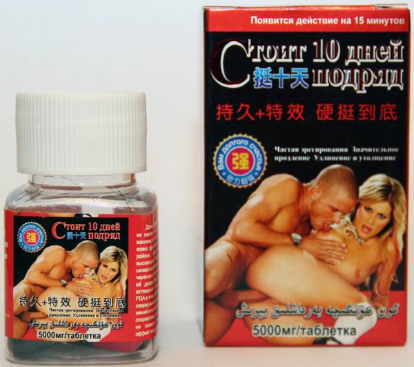 Капсулы "Стоит 10 дней подряд" оказывают общеукрепляющее и омолаживающее действие на мужской организм. Также препарат стимулирует кровообращение в органах малого таза и значительно улучшает обмен веществ. Препарат обладает мощным и эффективным действием, позволяя мужчине быть выносливым и страстным в сексе Преждевременная эякуляция (семяизвержение) Снижение либидо, с полным или частичным отсутствием влечения к половому партнёру; Быстрая утомляемость во время секса; Нарушения в работе предстательной железы (простатит); Для профилактики воспалительных нарушений органов малого таза. Состав женьшень настоящий; пенис и панты дикого оленя; галантус тяньшань; трутовик лакированный; аминокислота аргинин Изготовитель: Китай Формат выпуска: В одной упаковке 10 капсул по 5000 мг Противопоказания При повышенной чувствительности к отдельным компонентам в ходящим в состав капсул, при склонностях к аллергическим реакциям. Не рекомендовано принимать женщинам и лицам, не достигшим 18-ти лет. При тяжелых сердечно-сосудистых заболеваниях (инсульте, пороках сердца, в период восстановления после хирургической операции на сердечной мышцы). При диагнозе злокачественная опухоль. При тяжелых патологиях печени и почек. Если у вас есть хронические заболевания, перед началом использования средства проконсультируйтесь с врачом. Принимать по 1 капсуле за 15-30 минут до полового акта, запив тёплой водой. Стоит 10 дней подряд капсулы для мужчин – это растительный препарат, который можно использовать ежедневно Цена за 1 капсулу