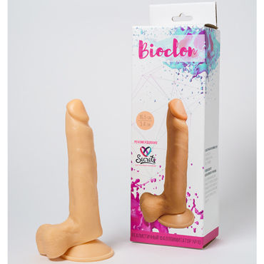 Фаллоимитатор Bioclon реалистичной формы с мошонкой выполнен из полужесткого, приятного на ощупь материала. Ярко выраженная остроконечная головка обеспечит дополнительное удовольствие от массажа стенок влагалища. При помощи мощной присоски, расположенной в основании фаллоимитатора, его можно закрепить на любой плоской поверхности.
