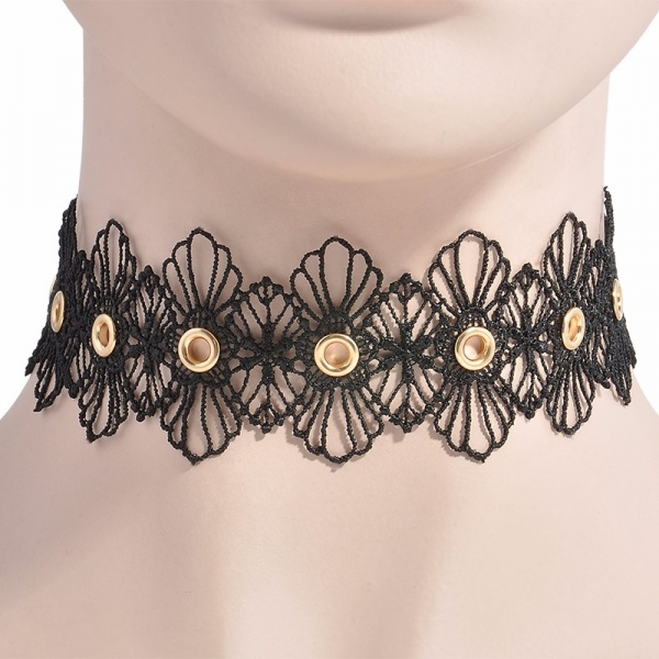 ЧОКЕР ЧЕРНЫЙ КРУЖЕВНОЙ С ЗОЛОТИСТЫМ МЕТАЛЛОМ