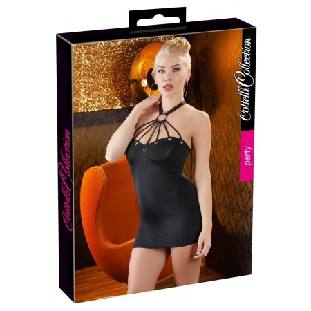 Облегающее мини-платье с воротником. С декоративными петельками, большими латунными кольцами и ремнями над зоной расщепления. Регулируемые лямки на шее перекрещены сзади. 95% полиэстер, 5% эластан.