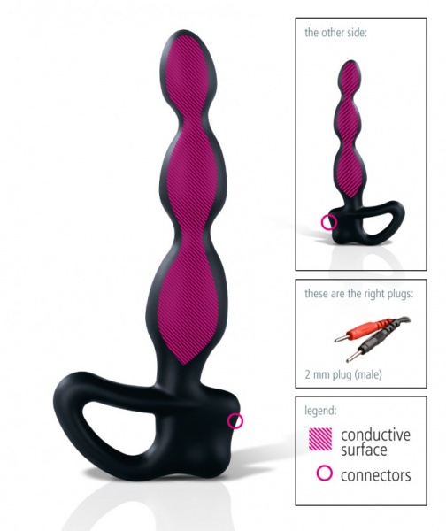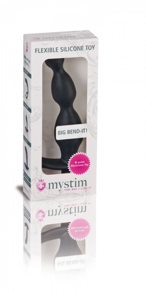 Big Bend-it! - это инновационный, биполярный электростимулятор простаты, сделанный из 100% гипоаллергенного медицинского силикона с добавлением платины для проводимости тока. Выполнен из 3-х овалов разного диаметра. Обладает инновационной биполярной токопроводящей поверхностью благодаря которой, при подключении к блоку питания Mystim, происходит электростимуляция простаты и мышц ануса.