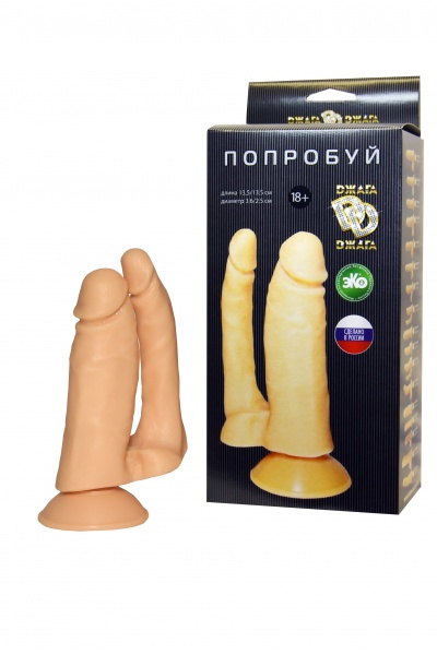 Реалистичный фаллоимитатор для двойного проникновения. Красивое тело фаллоимитатора и четко выраженные головки подарят невероятные ощущения! Для большего удобства использования секс игрушки, на ее основании имеется надежная присоска, позволяющая легко фиксировать фаллоимитатор на любой гладкой поверхности в необходимом положении. Выполнен из материала ЭКОй, который является новейшей разработкой Российского производителя интимных товаров. Материал имитирует текстуру кожи и принимает температуру тела. Без запаха! Без фенола! Длина анального 12 см, диаметр 2,5 см.