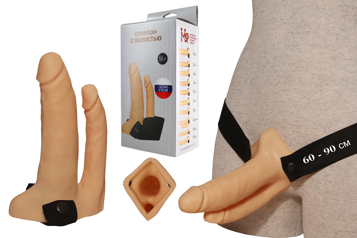 Крепится такой страпон на трусиках, ремешки на плечи как подтяжки. Используются и мужчинами, и женщинами. насадка полая. В ней есть отверстие для мужского члена, в случае того, если эрекция слаба или девушка хочет продолжения, когда партнер уже кончил.