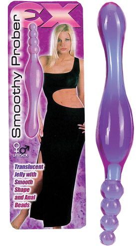 Анальный гелевый стимулятор. Благодаря необычной форме подходит как для опытных, так и для начинающих. Один конец стимулятора имеет закругленную форму, облегчающую введение, диаметр 2,5 см, другой конец сделан в виде скрепленных между собой бус, диаметр от 1 см до 2 см.