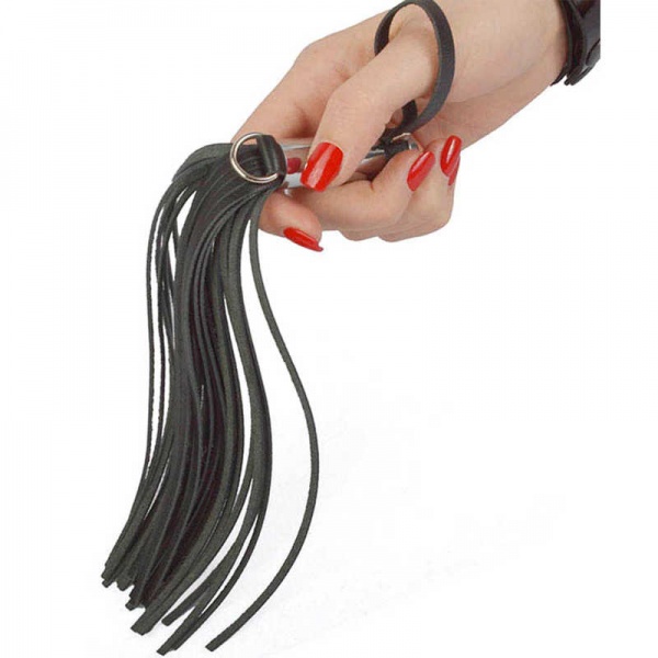Кистевой флогер – удобное, очень универсальное решение для эротических игр. Эта игрушка одинаково хороша как для наказания, так и нежных, чувственных ласк. С его помощью Вы можете ударять по эрогенным зонам, а можете мягко поглаживать их, вызывая очень сильные эротические ощущения. Благодаря компактному размеру, игрушкой легко манипулировать, словно экзотической кисточкой, свободно меняя способы хвата. Флогер имеет хвост из тонких кожаных нитей, закрепленный на металлической полированной рукоятке. Внизу расположена петля, которую можно зафиксировать на большом пальце руки для более комфортного удержания. Попробуйте, это действительно интересный, многофункциональный аксессуар, хорошо подходящий и для начинающих, и для опытных поклонников БДСМ. Общая длина 23 см