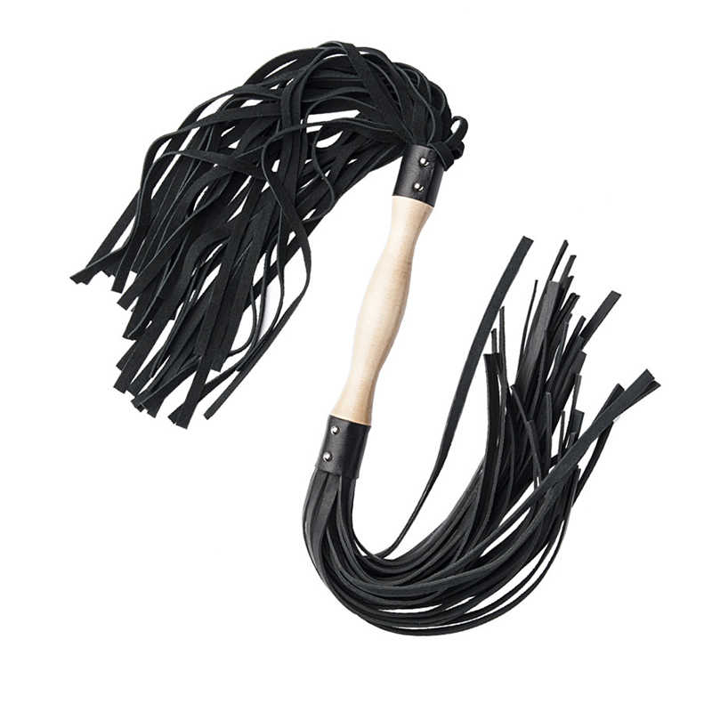 Двойной флоггер с точеной лакированной ручкой. Хвосты разной жесткости с разных сторон: мягкая замша для разогрева и щадящего воздействия с одной стороы, жесткая кожа для серьезной работы с другой. Хвосты длиной 37см, ручка с удобным захватом - 26. Ласкать или наказывать этим девайсом - решение Господина.