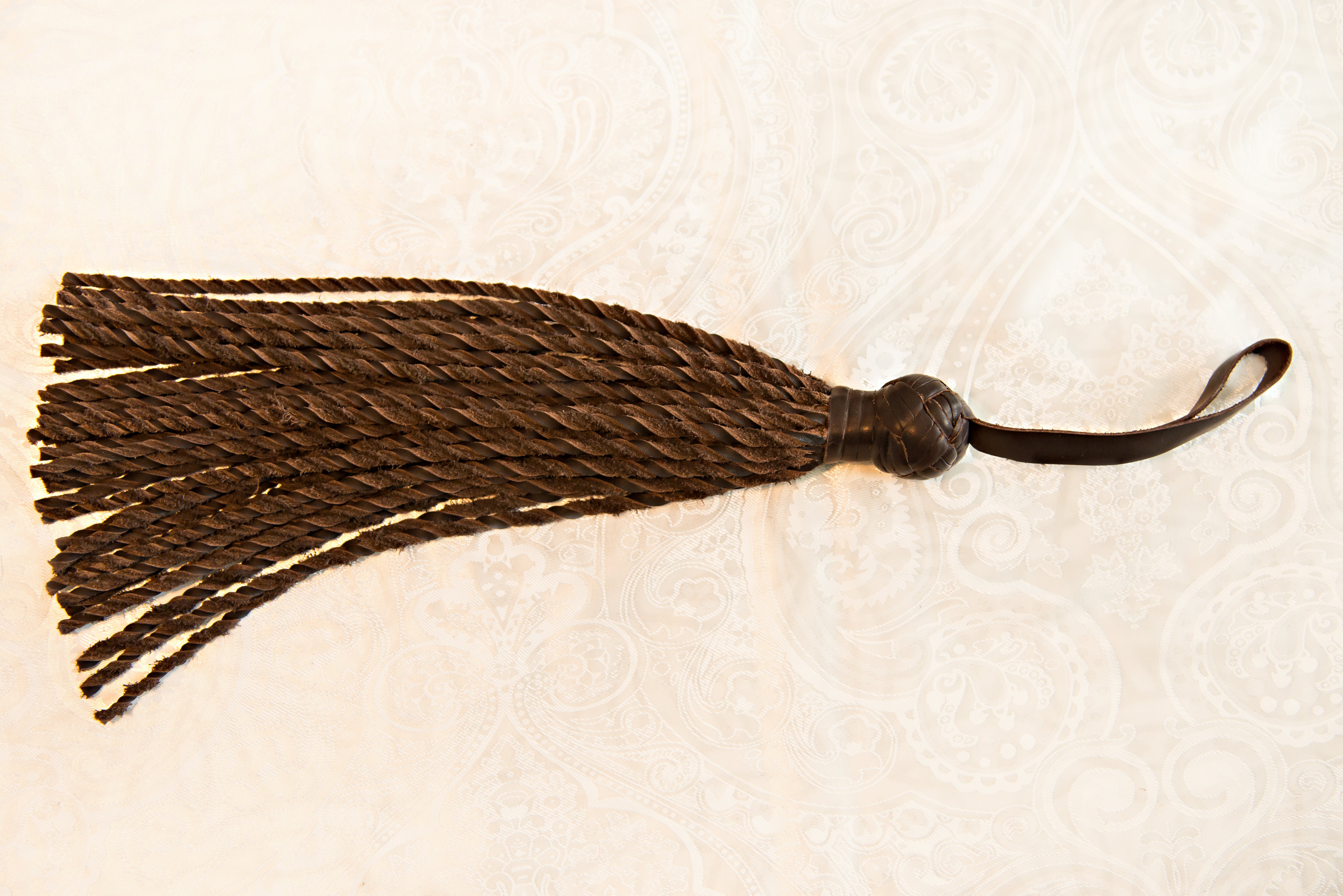Мини-флоггер с серебристой ручкой. Хвосты из мягкой кожи 20 см. Удобно ложится в руку, подходит для разогрева.