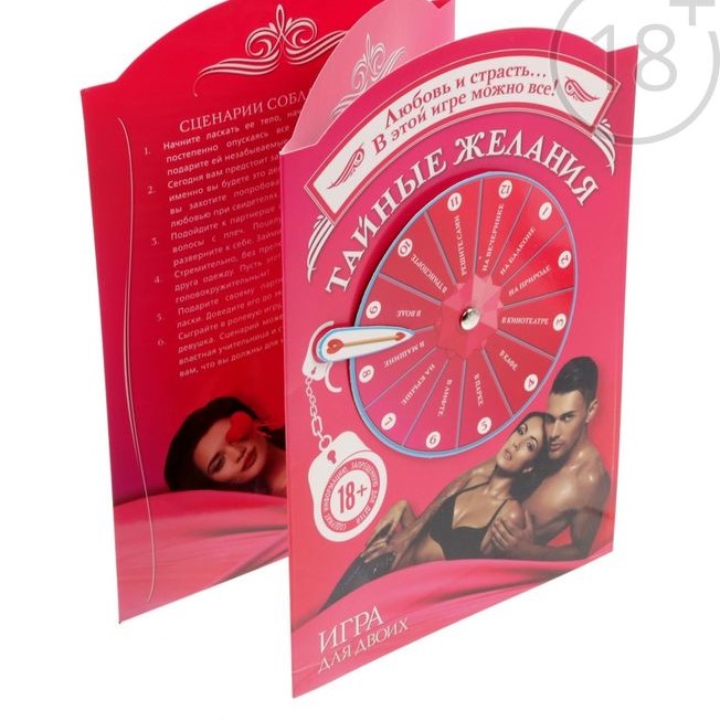 Страсть может застать врасплох в любом месте, даже в самом экстремальном! У любви нет преград, и наша игра — прямое этому доказательство. Подарите друг другу незабываемые ласки и доведите вашу вторую половинку до экстаза! Развлечение для двоих Раскрутите рулетку в первый раз и узнайте, где вам предстоит отдаться страсти. Возможно, нужно будет доставить друг другу удовольствие в парке или дарить головокружительные ласки на крыше… Раскрутите рулетку во второй раз. Посмотрите, какая цифра выпала на её секторе, и прочитайте сценарий соблазнения под этим номером. Но и это ещё не всё! Внутри вы найдёте 5 игр для самых жарких ночей. Угадывайте желания друг друга или почувствуйте себя учеником в школе ласк. Получайте удовольствие! |