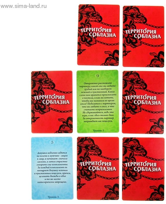 Если бы вы знали, что завтра конец света и это именно тот день, когда можно воплотить в жизнь свою самую смелую сексуальную фантазию, чего бы вам хотелось? При помощи этой игры вы сможете воплотить все тайные желания друг друга! В игре 5 уровней: начинайте с карточек первого уровня, а затем по очереди вытягивайте по одной, зачитывайте задание и выполняйте его. Когда колода заканчивается, переходим ко второму уровню, формируем новую колоду и так до конца игры. С каждым новым уровнем задания становятся всё более откровенными и раскрепощающими. Все начинается с легкого флирта, а затем плавно переходит к нежным предварительным ласками, ролевым играм и... необузданная страсть переполняет вас обоих! В игре предусмотрены штрафы, каждое наказание определяется фантом. Это отличный подарок для ваших друзей и подруг: они будут благодарны вам после того, как опробуют игру! Для тех, кто хочет разнообразить свою сексуальную жизнь: для сложив |