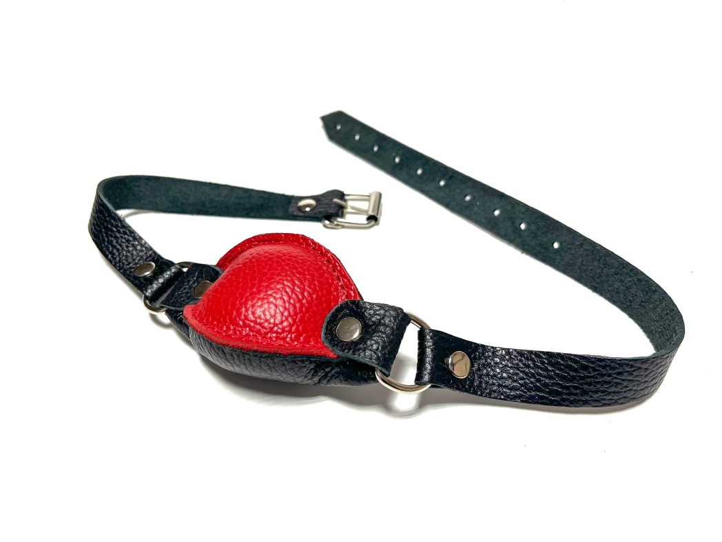 Качественный и удобный кляп, выполненный из натуральной кожи черного и красного цветов. Размеры кляпа 9 х 5см, благодаря наполнителю средней жесткости этот кляп будет комфортен в использовнии. Аксессуар декорирован сварной металлической фурнитурой. Ширина ремешков 1,8см, обхват удобно регулируется с помощью металлической пряжки. Отличный аксессуар для любовной игры и новых ощущений!