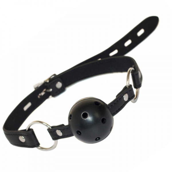 Кляп-шарик заставит замолчать Вашу покорную Рабыню или Раба и полностью устранит возможность связной речи. Отныне он или она будут выражать свои эмоции лишь с помощью невнятных возгласов, не в силах возражать воле своего Господина. Кляп представляет собой упругий пластиковый шарик с отверстиями для дыхания. Шарик закреплен на тонком ремешке, который в свою очередь крепится к ремню покрупнее при помощи круглых стальных колец. Для регулировки по размеру служит классическая пряжка, которую можно замкнуть на навесной замочек. Длина ремешка 64 см., диаметр кляпа 4,5 см.
