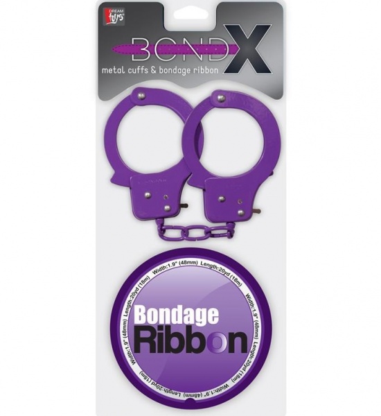 Лента для бондажа, фиолетовая, ПВХ, 18m * 48mm + наручники из металла, фиолетовые