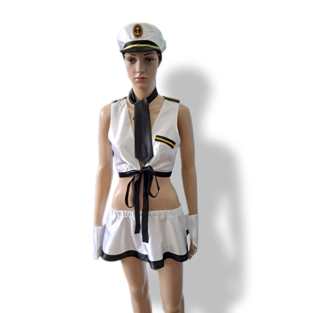 Комплект белья "Болельщица" - это игровой, ролевой костюм, состоящий из пяти предметов: фуражки, галстука, манжетов, топа и юбки. Топ фиксируется на завязках, юбка длиной мини. Полный ролевой комплект белья отлично подойдет для костюмированной вечеринки или ролевой игр в паре.