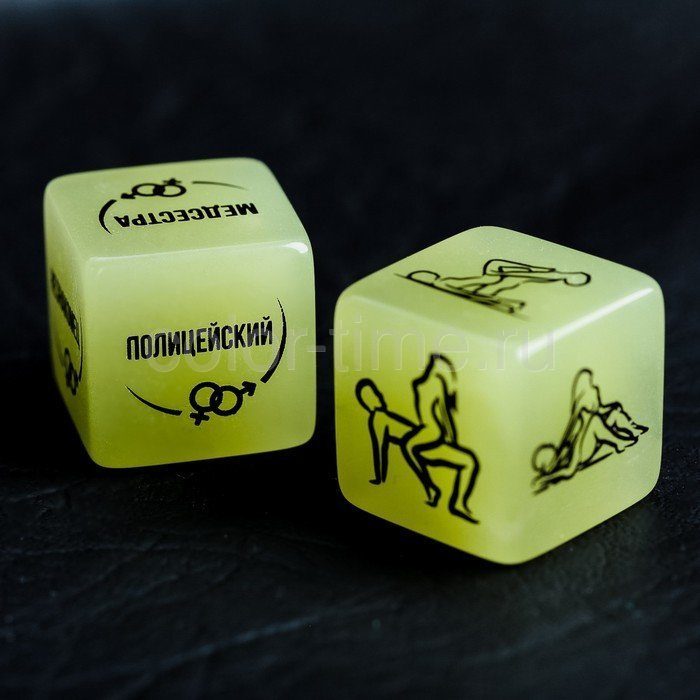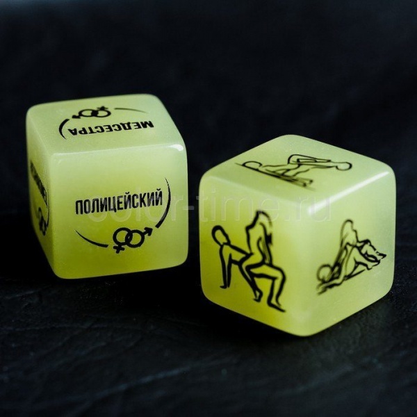 Кубики неоновые. 2х2 см. В упаковке 2 шт. Светятся в темноте! Определитесь, кто из вас задаст настроение этого вечера, и кидайте кубик. Роль, выпавшая на его грани, будет принадлежать одному из нас. Женская - девушке, мужская - мужчине. А какова будет роль партнера, решите сами. Второй кубик подскажет вам позу для секса. Эта ночь будет воистину жаркой!