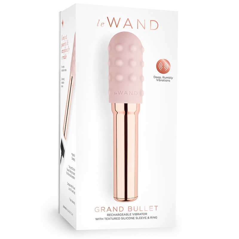 Вибратор LeWand Grand Bullet отличается очень красивой темной цветовой гаммой – ствол имеет металлизированное покрытие цвета полированного графита, а насадки окрашены в густой черный цвет. Девайс представляет собой более крупную версию потрясающего женского вибратора Le Wand Bullet. Он обладает всеми достоинствами компактной модели и при этом обеспечивает более полноценную стимуляцию как внешних, так и внутренних эрогенных зон. Более длинный ствол с выраженной головкой дает возможность проникать значительно глубже и эффективно ласкать внутреннюю поверхность вагины. В комплект входят две силиконовые насадки. Одна выполнена в виде головки и имеет рельеф в виде крупных пупырышек-бусин, повышающих эффективность массажа эрогенных зон. Вторая плоская и широкая, предназначена для кругового массажа вульвы – крупные пупырышки и волнистые ребрышки равномерно распределяют вибрации, что быстро доводит женщину до оргазма. С их помощью Вы можете ласкать клитор, половые губы, промежность, преддверие ануса, либо проникать во