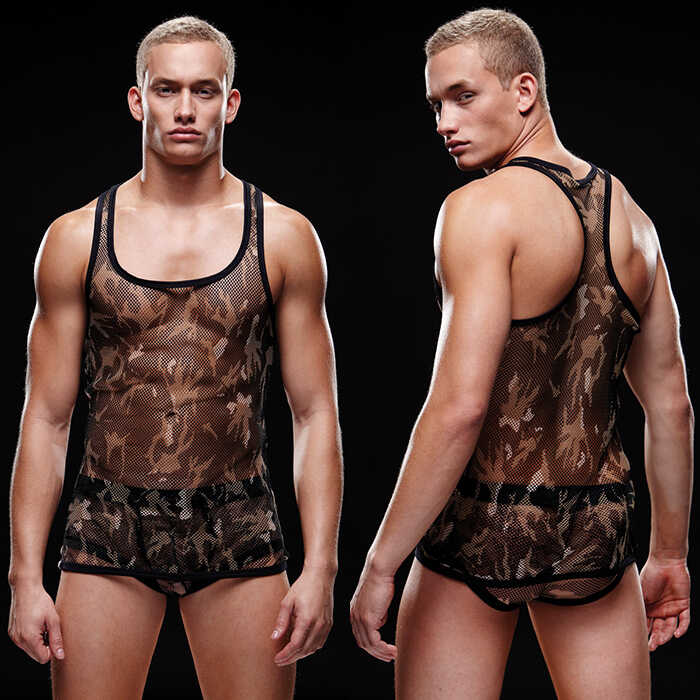 Мужская майка-борцовка, выполнена из эластичного, сетчатого материала цвета милитари.Модная мужская майка с узким плечом, подчеркивает сексуальность и зрительно увеличивает плечи. Размер S/M.