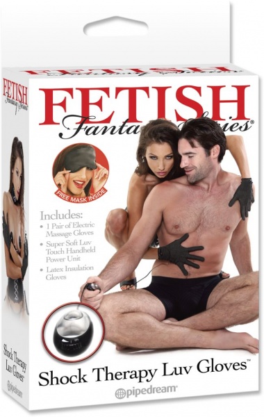 Pipedream Fetish Fantasy Series Shock Therapy Luv Gloves – комплект из серии секс-игрушек «Шоковая терапия». Пара перчаток передает электрические импульсы при каждом нажатии на пульте управления. Мощность электростимуляции можно регулировать от легкого покалывания до более чувствительных ощущений. Электростимуляция управляется при помощи выносного пульта управления. Пречатки с изолирующей латкесной подкладкой внутри.