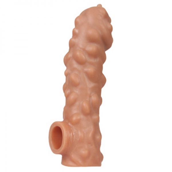 Используйте насадку для пениса Extreme Sleeve Res 003 для того, чтобы усилить ощущения женщины при половом акте. Это великолепный инструмент для получения удовольствия, помогающий даме получить глубокую сексуальную разрядку. Поверхность насадки покрыта хорошо заметными бугорками, которые массируют внутреннюю поверхность влагалища в процессе фрикций. Ультрамягкий термопластичный эластомер делает переживания особенно чувственными и реалистичными. Более того, благодаря снижению чувствительности и фиксации мошонки, мужчина может совершать любовный акт очень долгое время. Аксессуар имеет очень эффектный реалистичный дизайн с крайне выраженным рельефом, состоящим из жилок, складок и бугорков. В основании присутствует отверстие, выполняющее функцию кольца для мошонки. Модель представлена в размере Large, ее длина в исходном состоянии 17,6 см., диаметр 5,1 см.