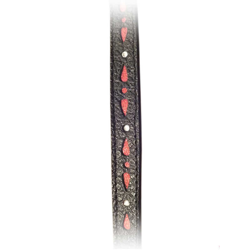 Данная модель выполнена из натуральной кожи и украшена стразами, идеально подходит для повседневной носки. Ошейник — изысканный аксессуар из натуральной кожи, великолепно будет смотреться с вашим любым эротическим костюмом для сексуальных игр. Ширина изделия 1,5 см.
