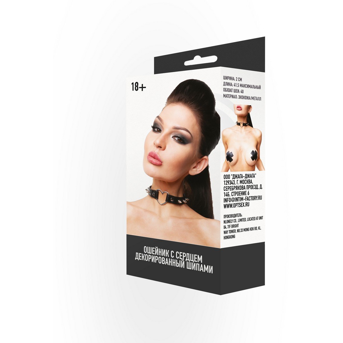 Ошейник с украшением-сердечком и стальными шипами, Джага-Джага 912-10 BX DD