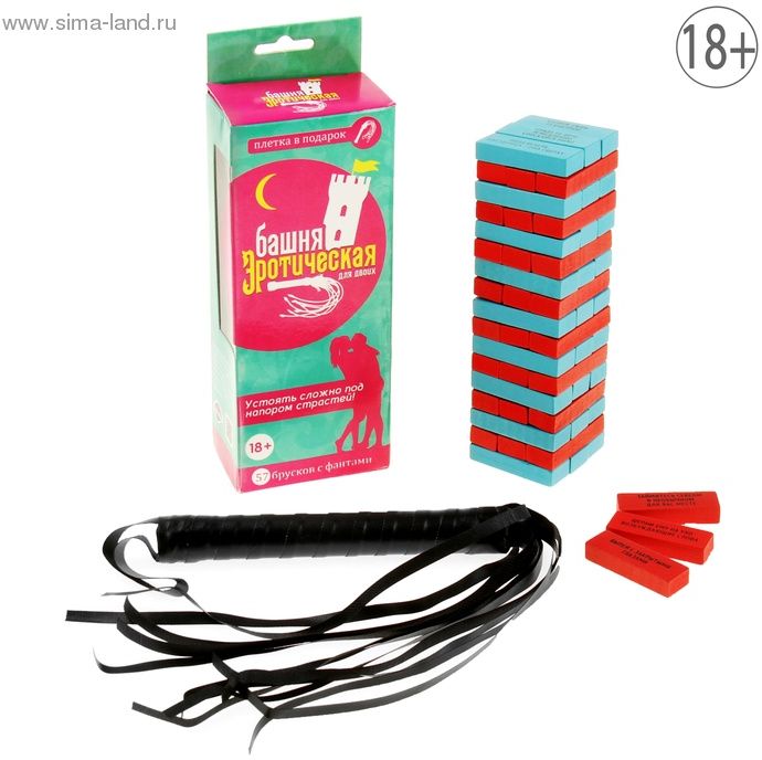 Так-так, всё по порядку. В вашем распоряжении 57 деревянных брусков, которые необходимо выкладывать по три перпендикулярно друг другу. Что в итоге получилось? Верно, башня! Ну а теперь, самое интересное. Мужчина вытягивает из башни только голубые бруски, ну а дама – только красные. Зачитывайте задание с вытащенного бруска и выполняйте его. Страстные поцелуи, нежные поглаживания и даже ролевые игры. Ну а плетка, станет отличным дополнением к вашим играм.Артикул SUV601370