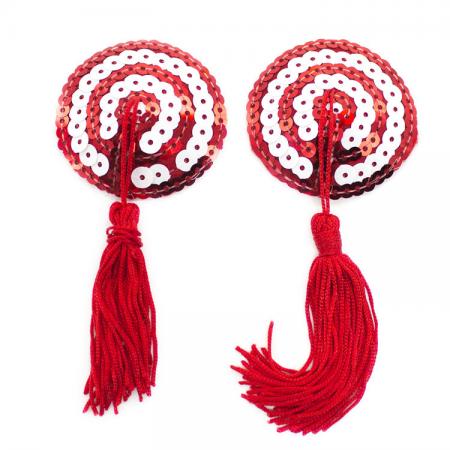 Невероятно сексуальный аксессуар для раскованных и уверенных в себе женщин - блестящие красно-белые пэстисы в форме круга, украшенные пайетками. Эта яркая деталь эротического образа, приятно удивит Вашего любимого мужчину.