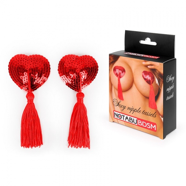 • Пэстисы на грудь в форме сердечек с пайетками и кисточкой, цвет красный, Notabu NTB-80597