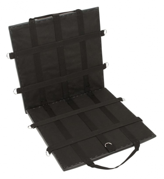 Доска для связывания складывается и имеет удобный для переноски ремень. В комплект входят различные аксессуары: мягкие манжеты для запястий и лодыжек (по 4 штуки) и чокер - все фиксаторы можно закрепить в любом месте на доске с помощью защелок. 1 кляп, 1 флоггер и 1 повязка на глаза также включены.