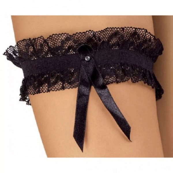 Подвязка на эластичной резинке, украшенная сатиновым бантиком.