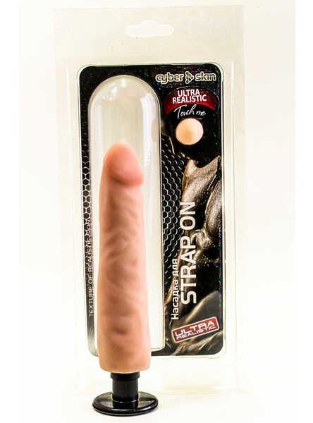 Насадка для страпона, изготовленная из "киберкожи", материала нового поколения, обладающий уникальными свойствами по пластичности, передающий эффект реалистичной текстуры кожи. Имеет ярко выраженную головку и прорисованные вены. Длина насадки - 17 см, диаметр - 4 см.