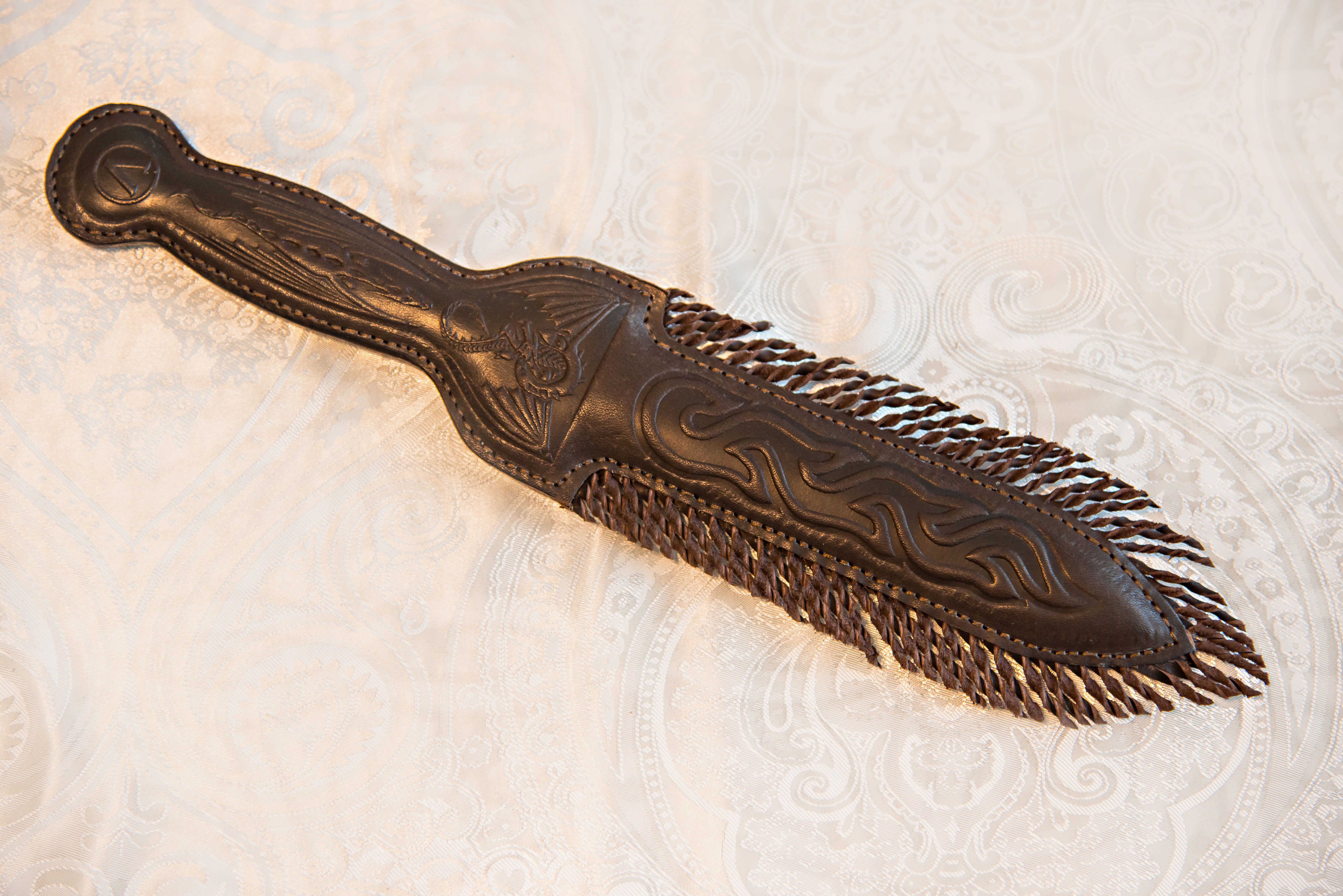 Мини-флоггер с серебристой ручкой. Хвосты из мягкой кожи 20 см. Удобно ложится в руку, подходит для разогрева.