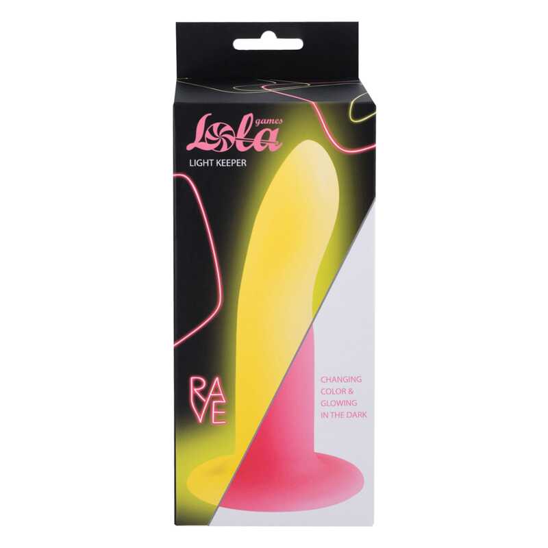 Зажгите этой ночью со светящимся в темноте нереалистичным фаллоимитатором Light Keeper из коллекции Rave! Light Keeper добавит ярких красок в Вашу интимную жизнь благодаря способности менять свой цвет в темноте. Игрушка изготовлена из невероятного мягкого на ощупь жидкого силикона, который не содержит фталаты и безопасен для кожи и слизистой. Мощная присоска в основании позволяет закрепить дилдо на любой ровной поверхности. Используйте фаллоимитатор для имитации третьего партнера или в качестве страпона, закрепив на трусиках. Light Keeper cовместим с любыми лубрикантами. Общая длина 13,3 см, диаметр 2,8 см, рабочая длина 12 см.