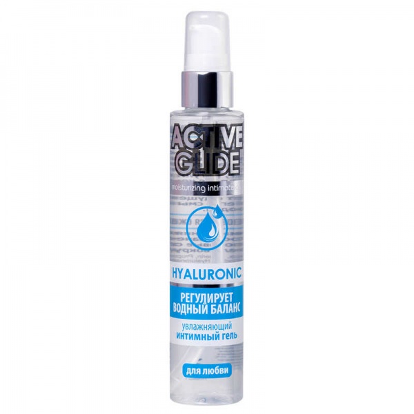 Нежный гель-любрикант на водной основе Active Glide с гиалуроновой кислотой интенсивно и длительно увлажняет и смягчает интимные зоны, устраняет сухость влагалища, восполняет недостаток женской смазки, дарит приятное продолжительное скольжение во время близости, снимает раздражения, препятствует появлению микротравм. Входящая в состав любриканта гиалуроновая кислота нормализует водный баланс клеток, способствует регенерации кожи и слизистых, обеспечивает эластичность тканей половых органов. снижает чувствительность кожи, усиливает её защитные функции. Гель-любрикант Active Glide с гиалуроновой кислотой обеспечивает бережный уход за интимными зонами женщин и мужчин. Не имеет цвета и запаха, легко смывается водой.