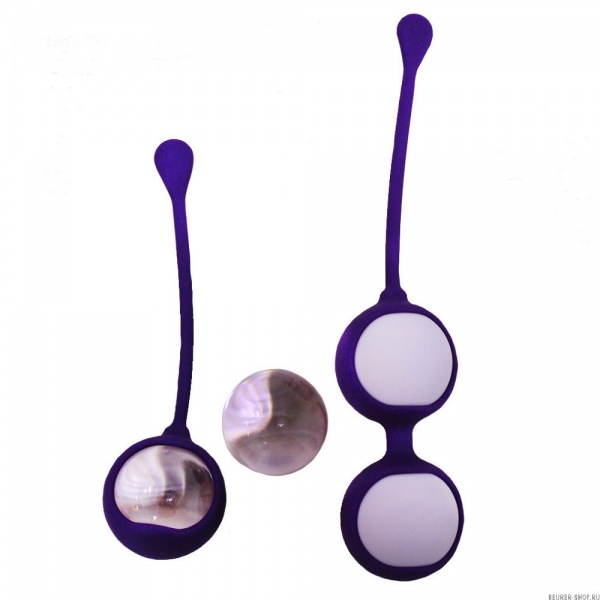 Набор из двух стеклянных и двух силиконовых вагинальных шариков (шарики Кегеля) диаметром 3 см, для выполнения упражнений по укреплению вагинальных мышц после родов и улучшения тонуса влагалища. В комплекте 2 вида нитей - одинарная и двойная. Цвет - розово-фиолетовый