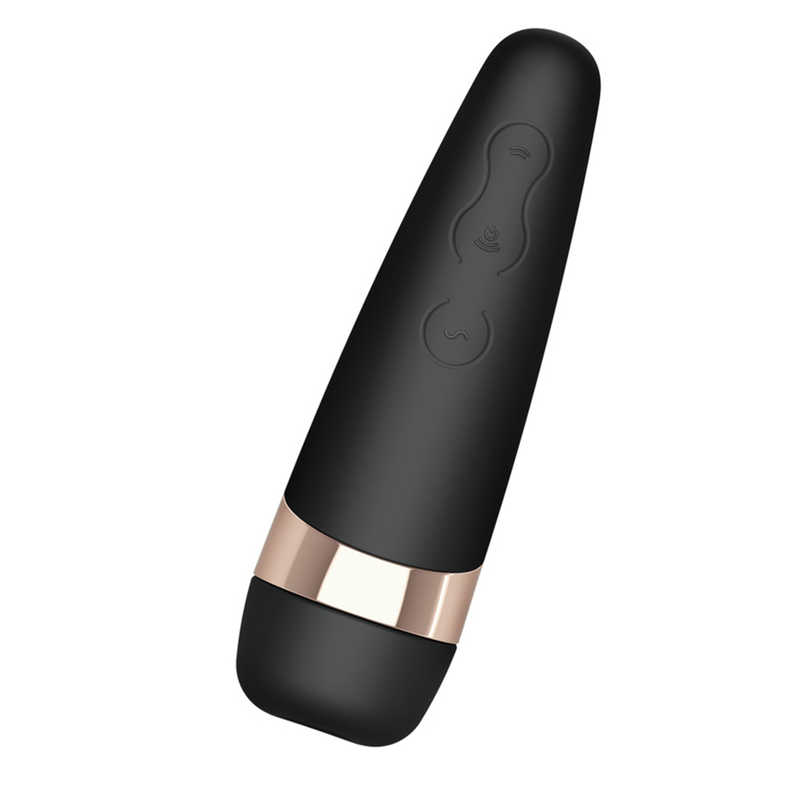 Новый стимулятор Satisfyer (Сатисфаер)предлагает обновлённый дизайн и дополнительную функцию вибрации. Satisfyer Pro 3 Vibration сочетает в себе интенсивную бесконтактную стимуляцию клитора под воздействием волны давления с чувственно вибрирующей накладной головкой. Новая система воздействия на клитор с помощью вакуума, вибрации и давления воздухом. Стимулятор нежно присасывается к области вокруг клитора, но при этом не прикасается к нему. Такая стимуляция называется бесконтактной, является самой безопасной и считается максимально действенной. Вакуум и воздух создают целенаправленные, но деликатные ритмичные волны. 11 режимов, создают ощущение орального секса, а край кольца вокруг клитора массирует 10 различными вибрациями. Этими функциями можно управлять отдельно, что в совокупности дает 110 различных режимов.
