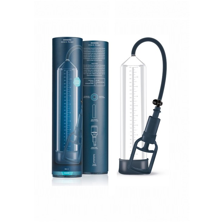 Нагнетание воздуха происходит за счет нажатия поршня. Помпа оснащена кнопкой быстрого выпуска воздуха. Прозрачная колба позволяет отслеживать увеличение пениса.