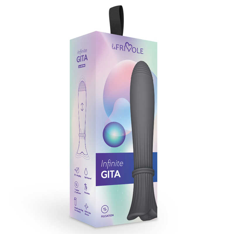 Очень интересная модель вибратора. Пульсатор Gita способен генерировать мощные, хорошо ощутимые импульсы, которые создают возвратно-поступательные движения и имитируют фрикции. Когда игрушка находится внутри вагины возникает эффект присутствия партнера и совершенно невообразимые интимные переживания. Новейшие технологии дарят новые, неизведанные ощущения. Аксессуар имеет 7 режимов пульсации и почти бесшумный моторчик, который не слышен даже в темноте. Длина 20 см., длина ствола 14,5 см., диаметр ствола 3,5 см. В комплект входит мешочек для хранения.