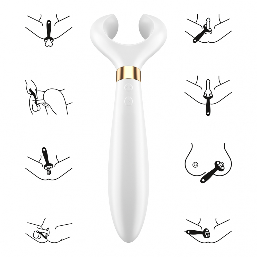 Satisfyer Endless Fun- это универсальный вибромассажер. В стильном силиконовом корпусе располагаются 3 мощных мотора, Имеется 10 режимов вибрации в независимых друг от друга подвижных усиках игрушки, что позволяет насчитать 100 вариантов комбинаций вибрации! Режимы управляются сенсорными кнопками на рукоятке игрушки. Подвижная головка Satisfyer Endless Fun поворачивается на 180 градусов – многофункциональная сексуальная игрушка, которая позволяет играть в какие угодно игры и в любом положении! Отлично подойдет как для парных игр, так и игр соло (игрушка может предложить Вам целых 33 варианта применения в постели!). Вибромассажер изготовлен из гладкого, шелковистого медицинского силикона, имеет вставки из пластика. Имеет эргономичную форму. Магнитный кабель для зарядки USB в комплекте. Общая длина - 23,5 см. Длина ствола - 14 см. макс. диаметр - 4,4
